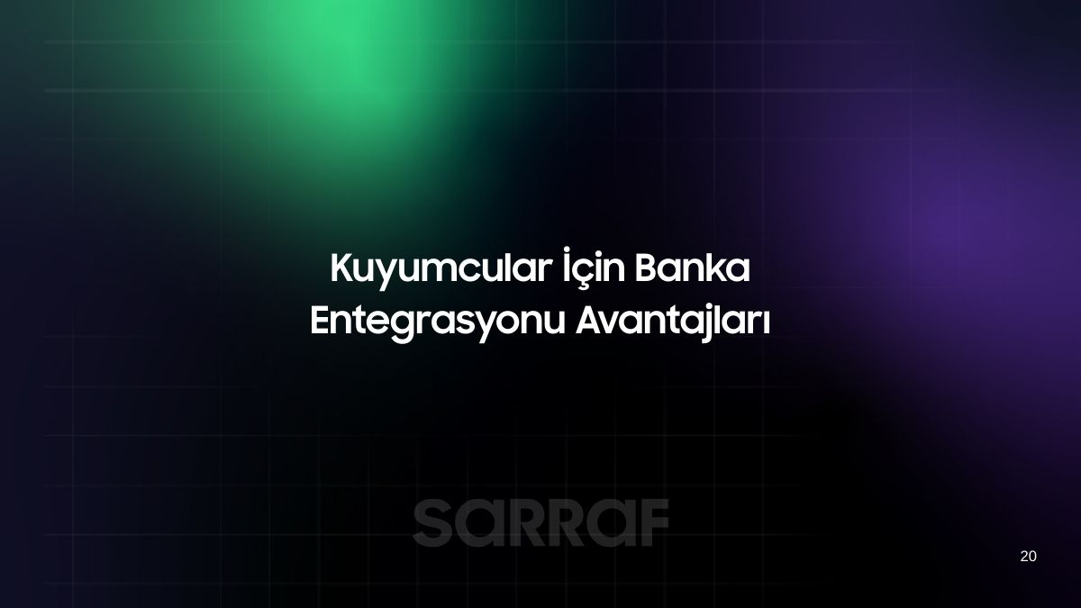 Sarraf.pro gibi çözümler, tüm büyük bankalarla uyumlu çalışarak kuyumculara özel tasarlanmış bir deneyim sunuyor. Böylece hem finansal operasyonlarınızı kolaylaştırıyor hem de büyümeye odaklanmanıza olanak tanıyor.
